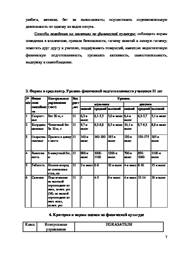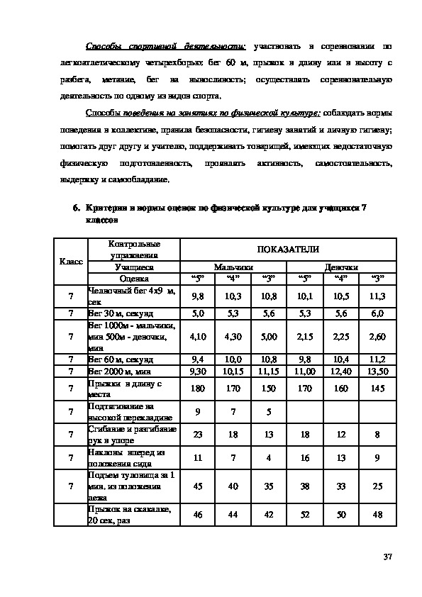 4. Критерии и нормы оценок по физической культуре учащихся 6 классов