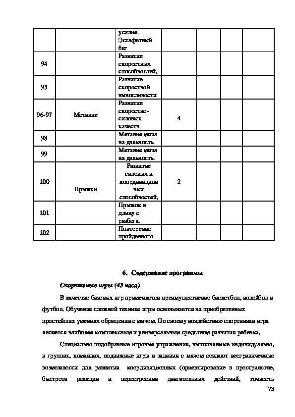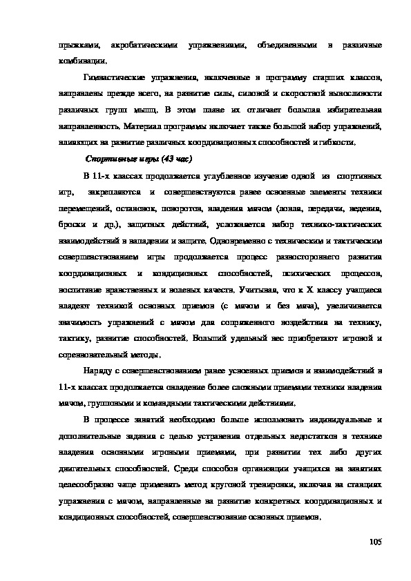Уроки физической культуры в этих классах содержат богатый материал для