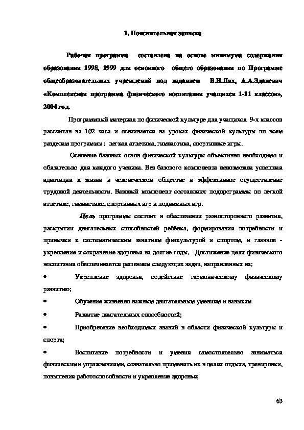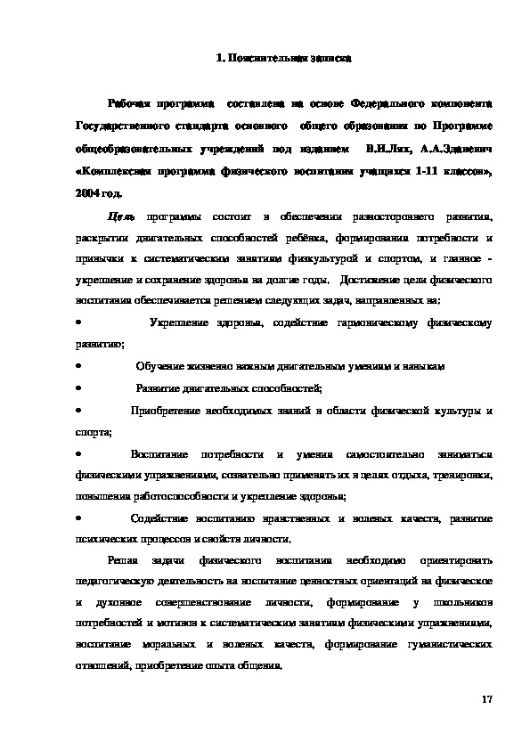 общеобразовательных учреждений под изданием В. И. Лях, А. А. Зданевич