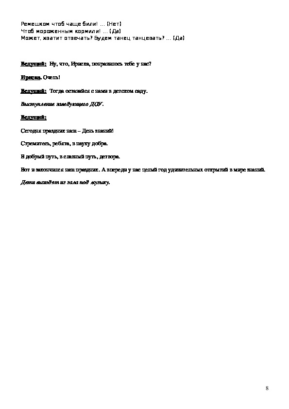 Ведущий: Мы поздравляем вас всех с праздником и хотим, чтобы он понравился и запомнился