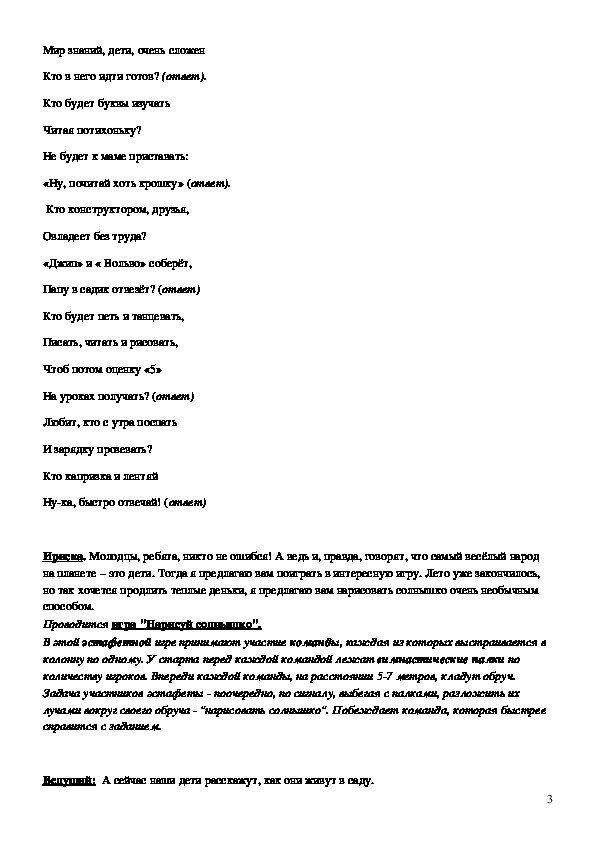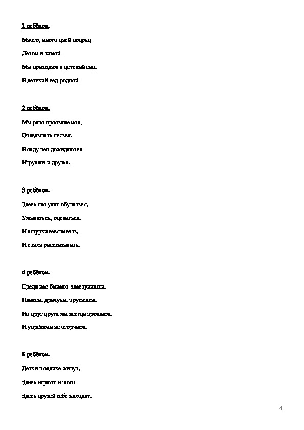Ведущий: А сейчас наши дети расскажут, как они живут в саду.
