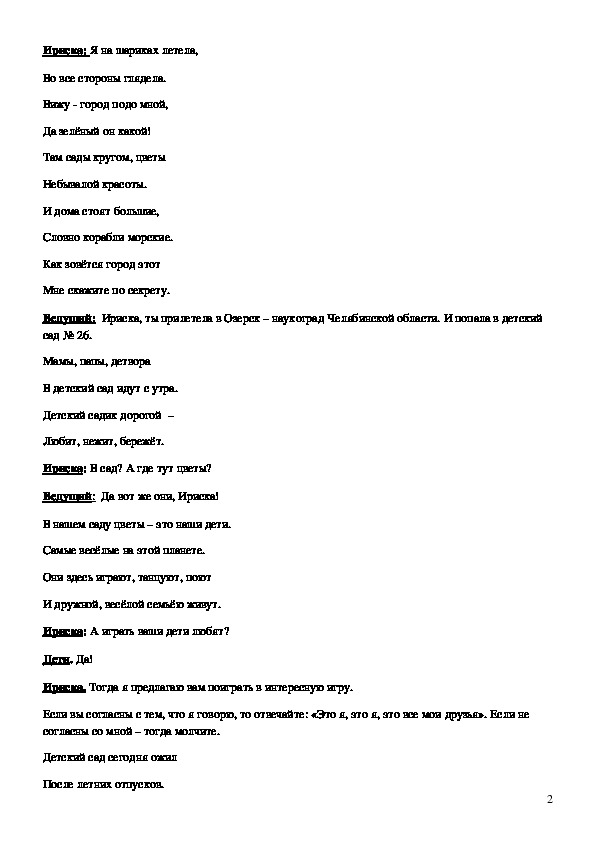 Ведущий: Ириска, ты прилетела в Озерск – наукоград Челябинской области. И попала в детский