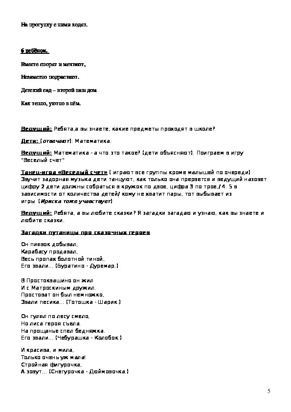 Участники: воспитатели и дети старшей группы детского сада.Сценарий праздника для старшего дошкольного возраста