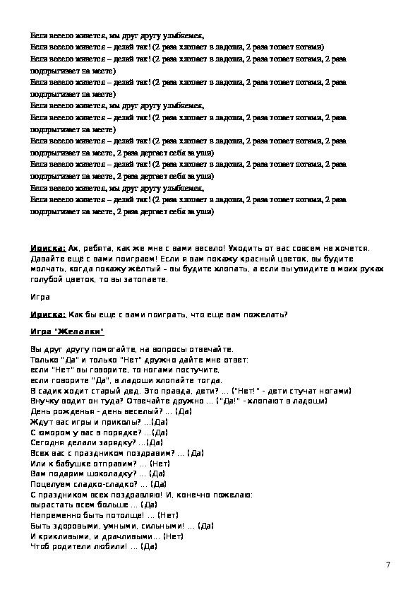 В садик ходит старый дед. Это правда, дети? ... ("Нет!" - дети стучат ногами)