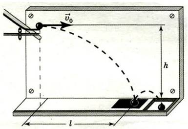 Equipment: tripod, steel ball with a diameter of 25 mm, a tray on which we roll the ball down, a ruler with millimeter divisions, sheets of white and carbon paper. The order of performance 1.Fix the tray on the stand (fig. 1). Pay attention to that its bent end is directed horizontally. In front of the tray lay out the sheets of white paper, and on top of them - a copy. Several times from different heights of the tray, release the ball and get the marks of the points of its fall on the table.