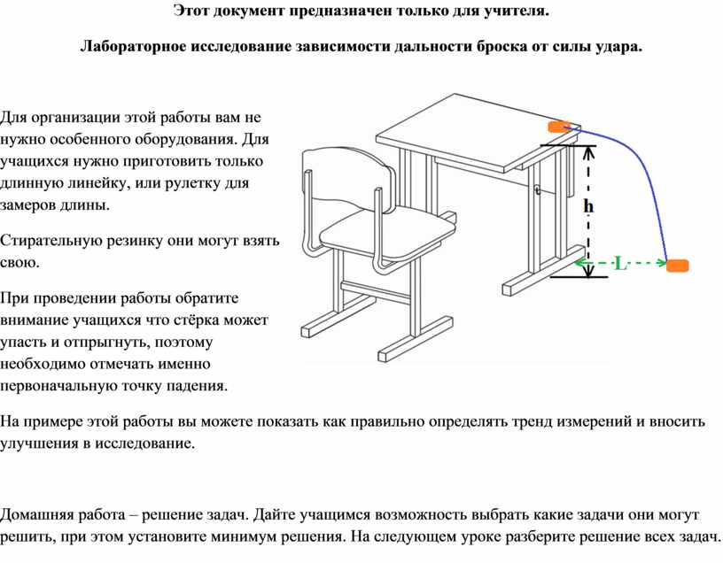При проведении работы обратите внимание учащихся что стёрка может упасть и отпрыгнуть, поэтому необходимо отмечать именно первоначальную точку падения.