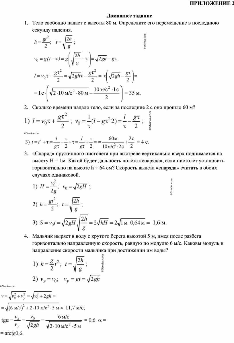 1. Тело свободно падает с высоты 80 м. Определите его перемещение в последнюю секунду падения.