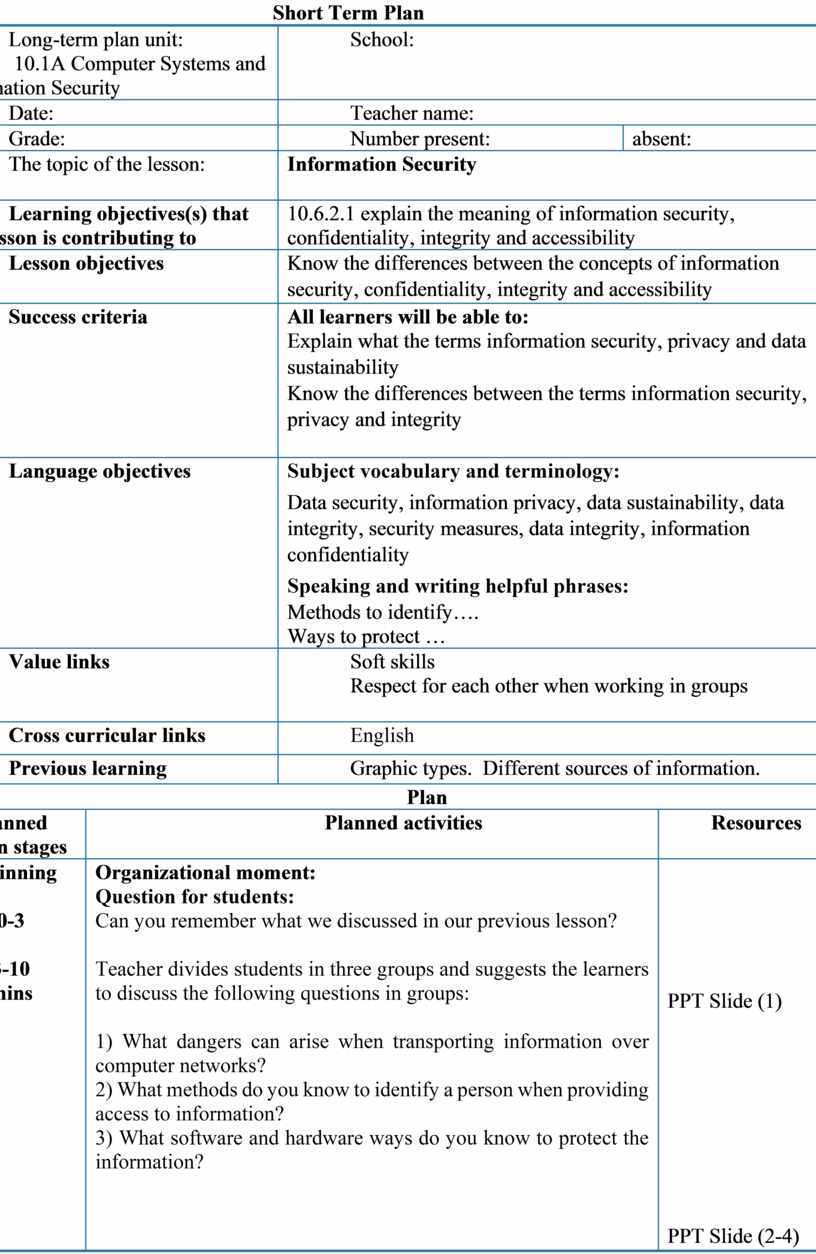 Subject vocabulary and terminology: Data security, information privacy, data sustainability, data integrity, security measures, data integrity, information confidentiality Speaking and writing helpful phrases: Methods to identify…. Ways to protect … |