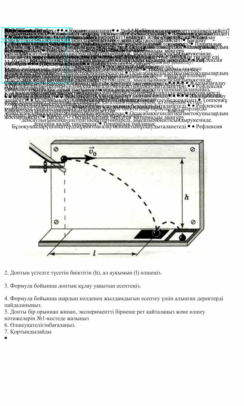 2. Доптың үстелге түсетін биіктігін (h), ал ауқымын (l) өлшеңіз.