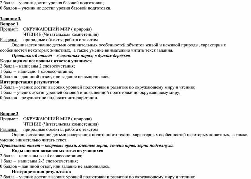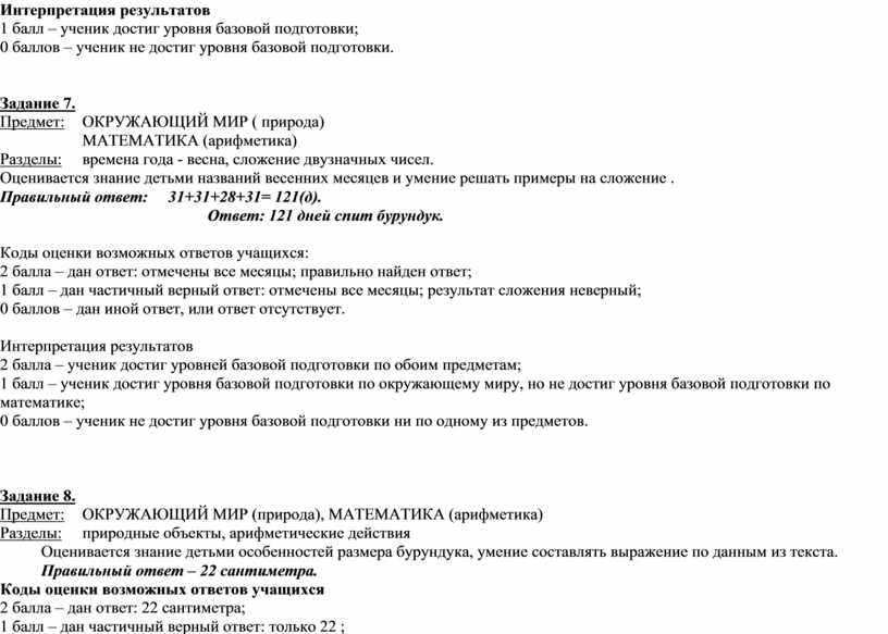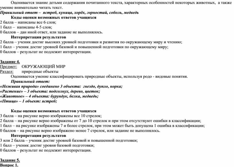 Рекомендации и критерии оценивания правильных/частично правильных и неправильных ответов. Правильные ответы на задания.