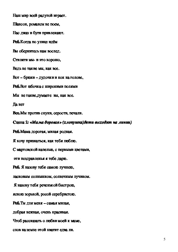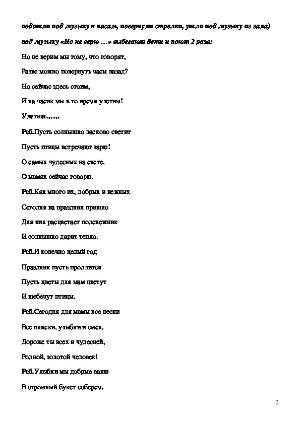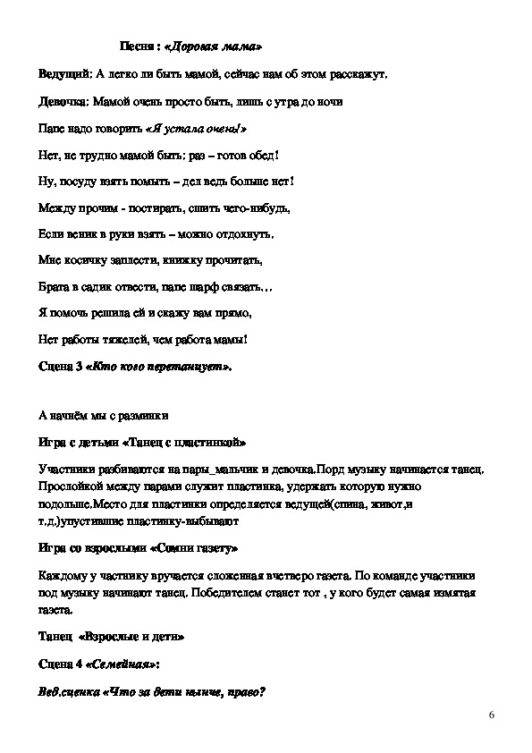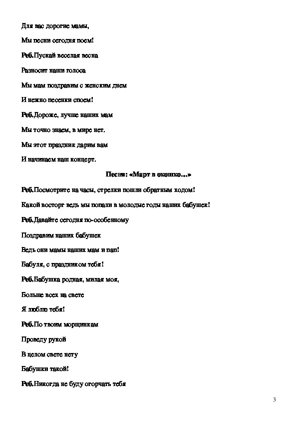 Цель: создать у детей радостное праздничное настроение, атмосферу взаимного уважения и любви детей к мамам и бабушкам.
