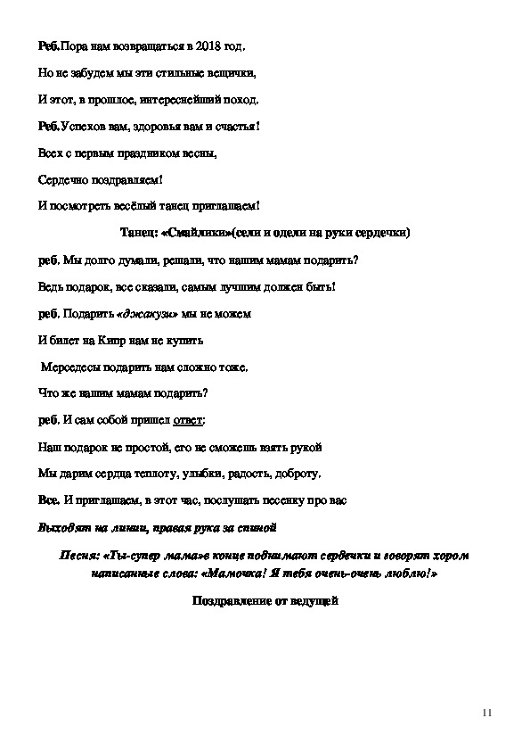 Песня: «Тысупер мама»в конце поднимают сердечки и говорят хором