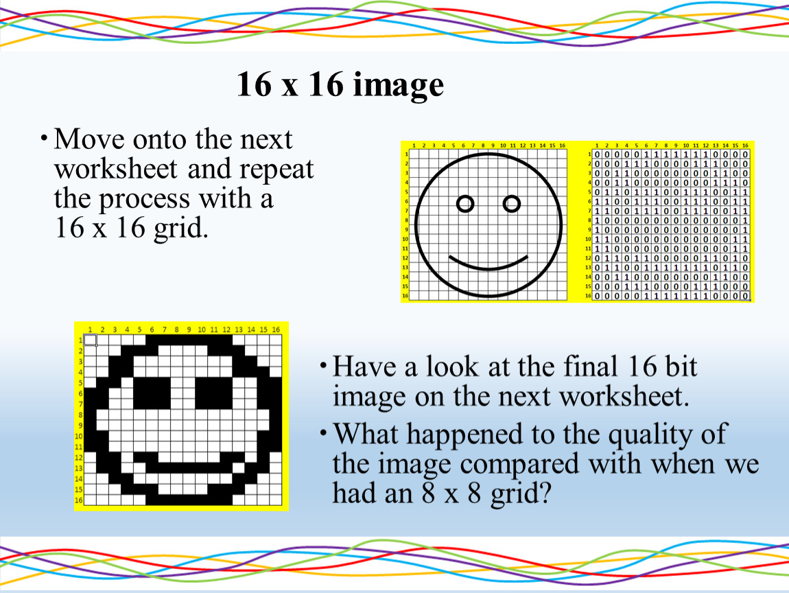 Move onto the next worksheet and repeat the process with a 16 x 16 grid.