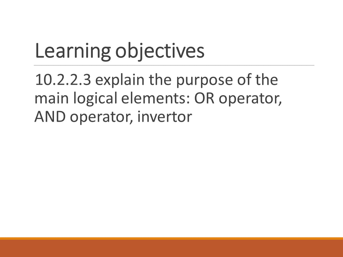 10.2.2.3 explain the purpose of the main logical elements: OR operator, AND operator, invertor