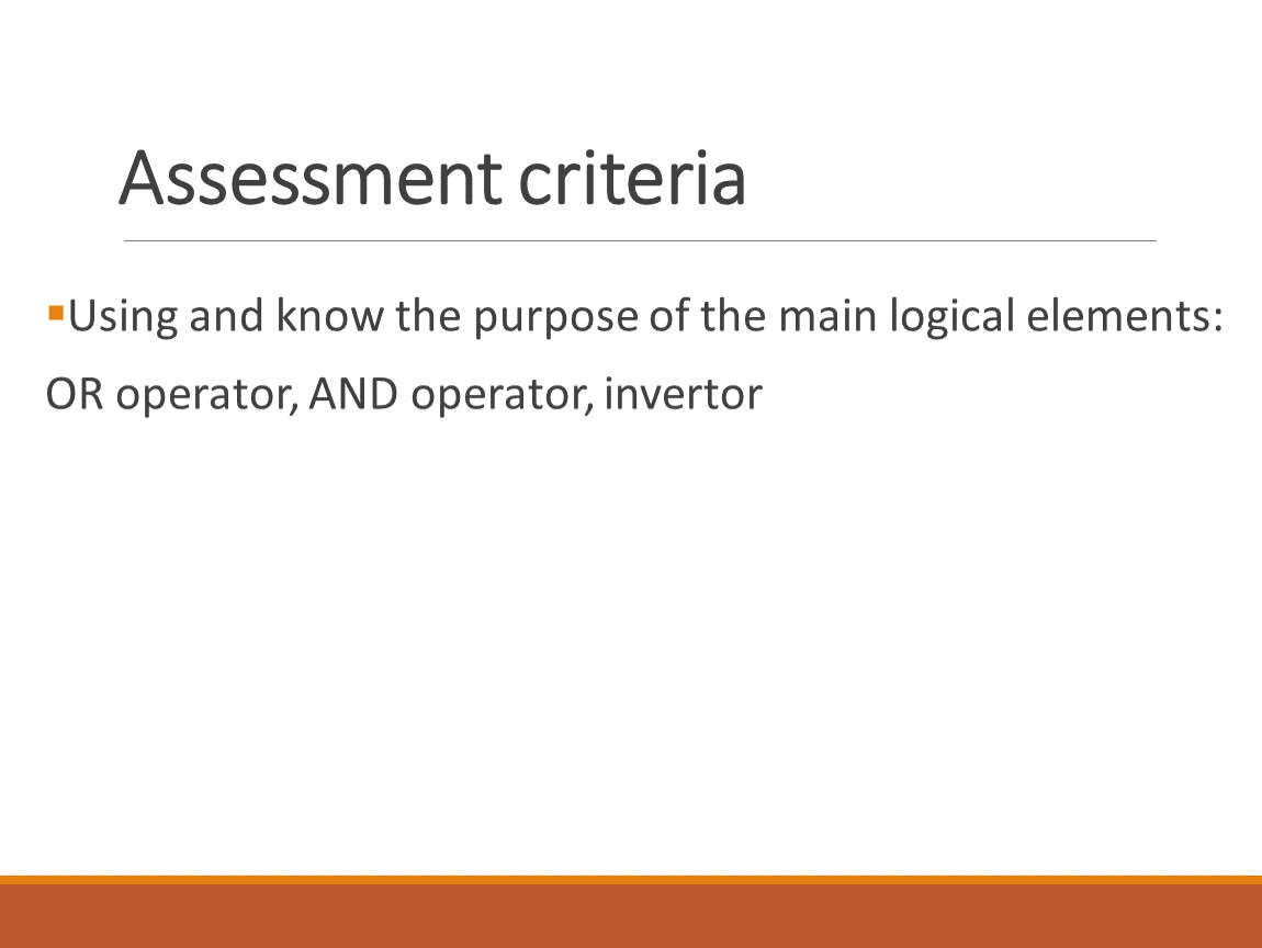 10.2.2.3 explain the purpose of the main logical elements: OR operator, AND operator, invertor