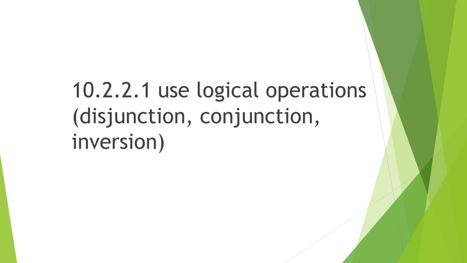 Logical negation - inversion | НЕ, | Changes the value of an expression to the opposite. | |