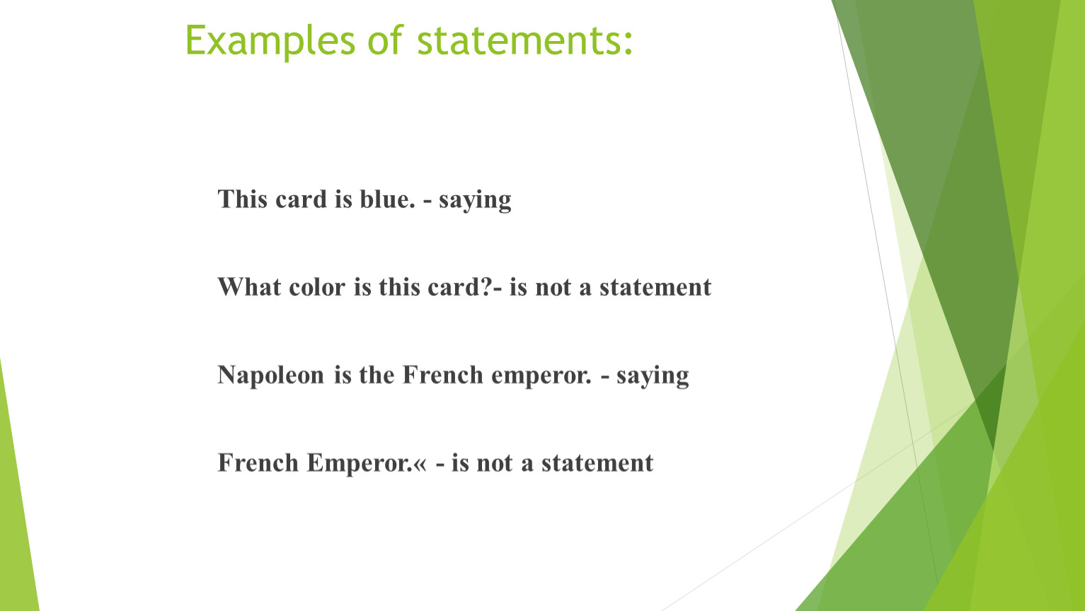 Examples of statements: