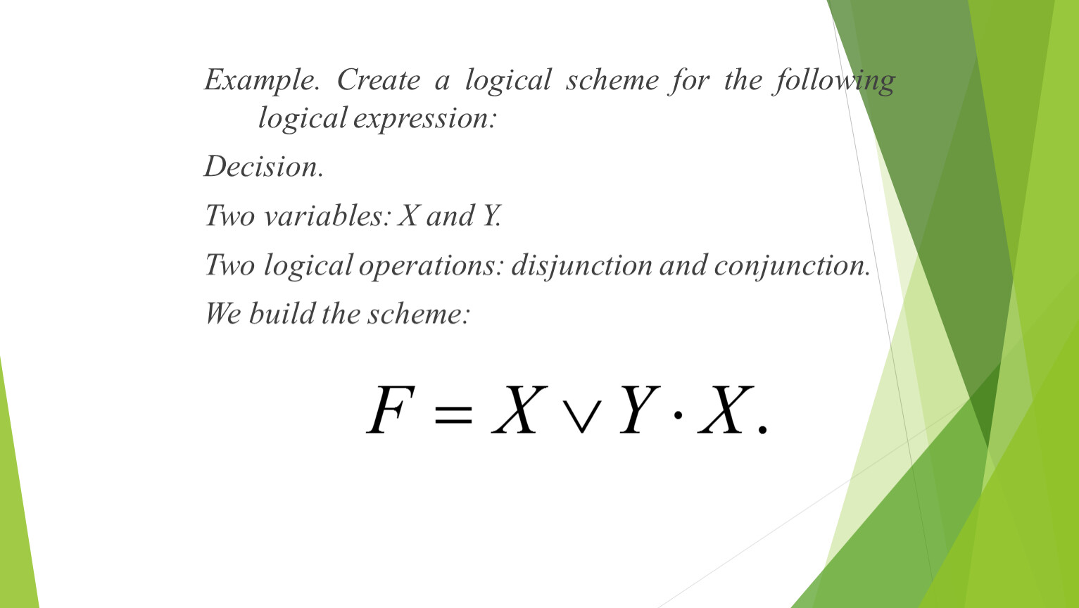 Example. Create a logical scheme for the following logical expression: