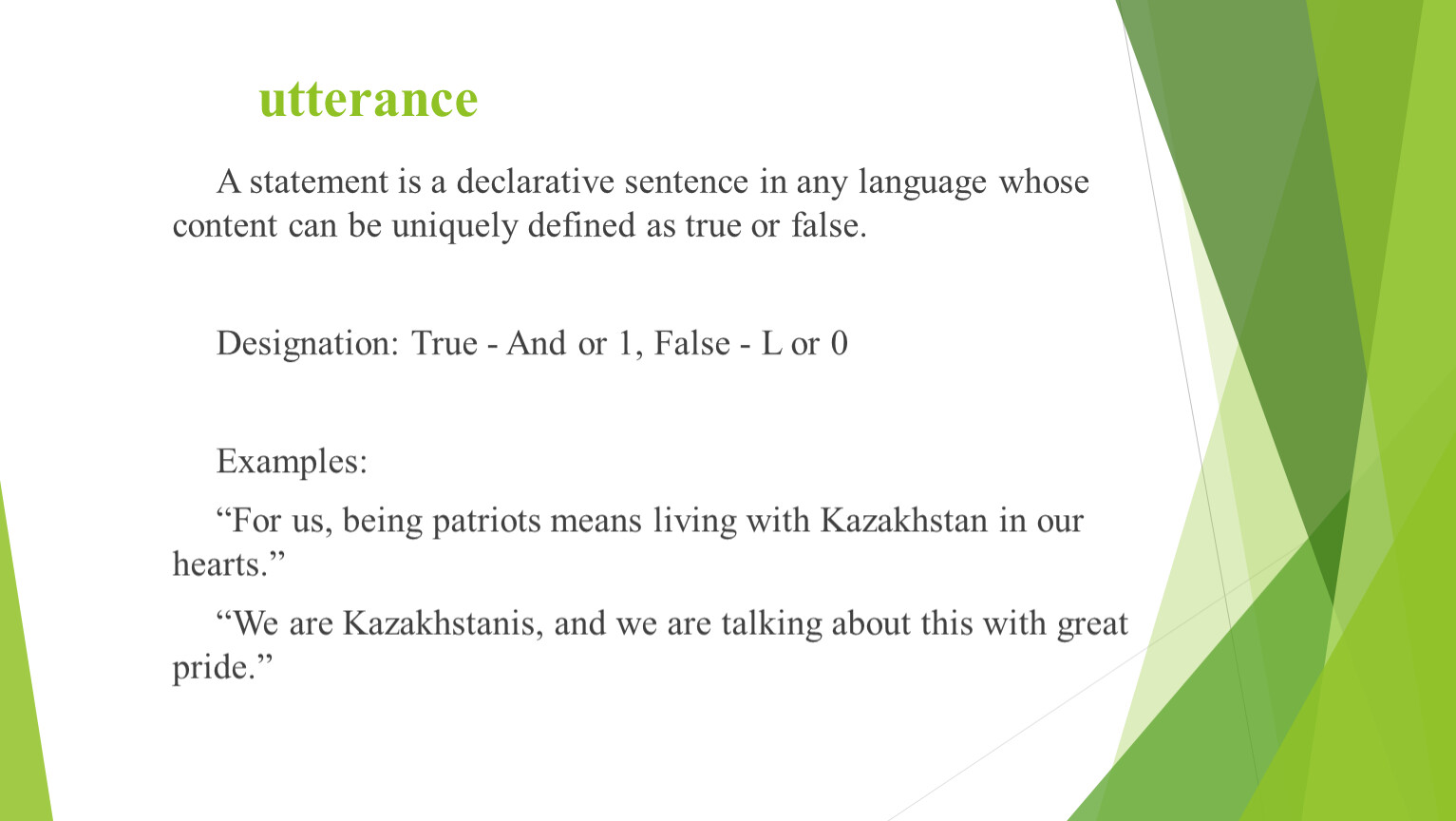 A statement is a declarative sentence in any language whose content can be uniquely defined as true or false.