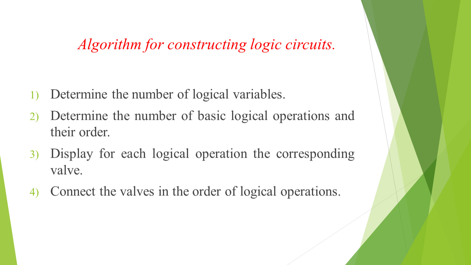 Algorithm for constructing logic circuits.