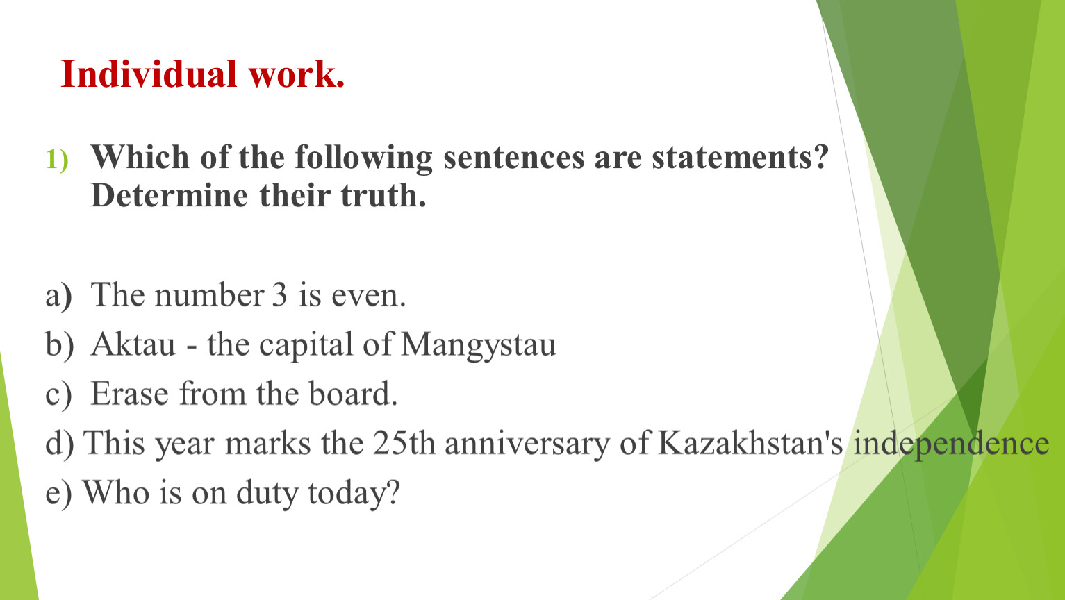 Individual work.