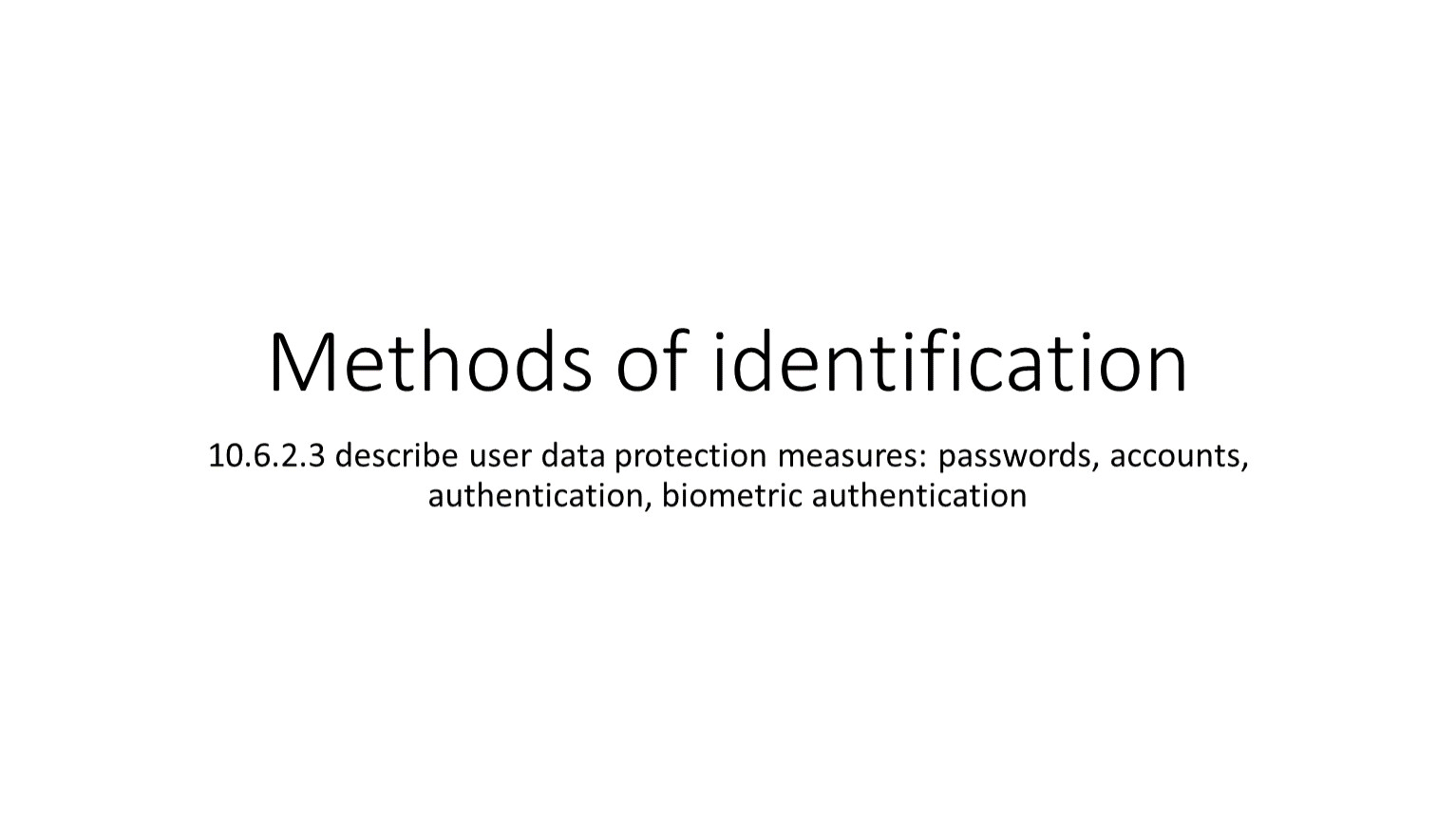 10.6.2.3 describe user data protection measures: passwords, accounts, authentication, biometric authentication