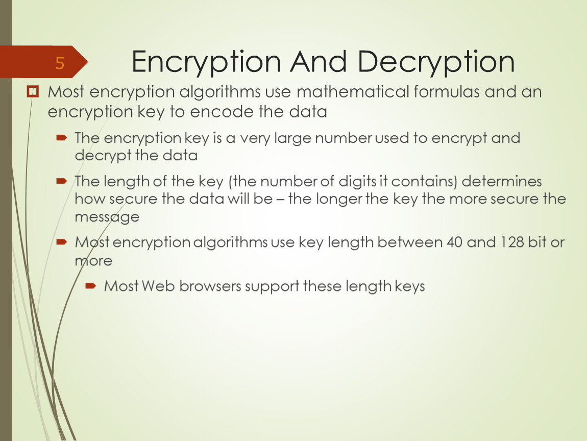 The length of the key (the number of digits it contains) determines how secure the data will be – the longer the key the more secure the message