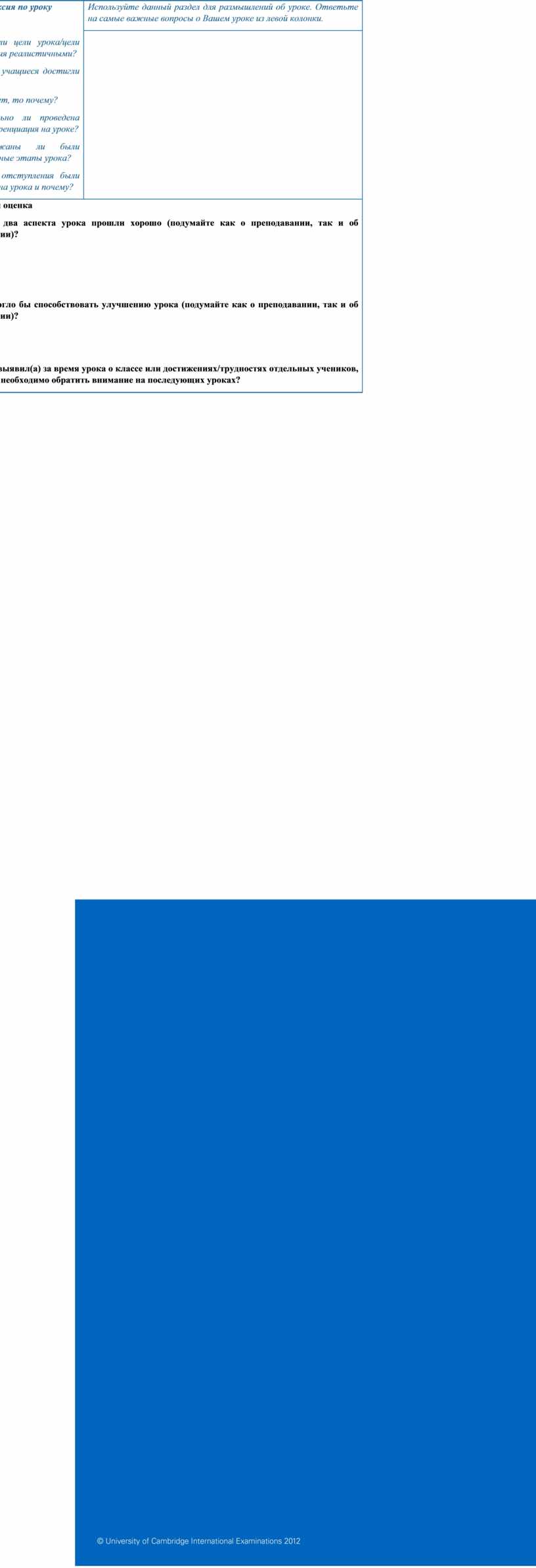 Используйте данный раздел для размышлений об уроке. Ответьте на самые важные вопросы о Вашем уроке из левой колонки. |