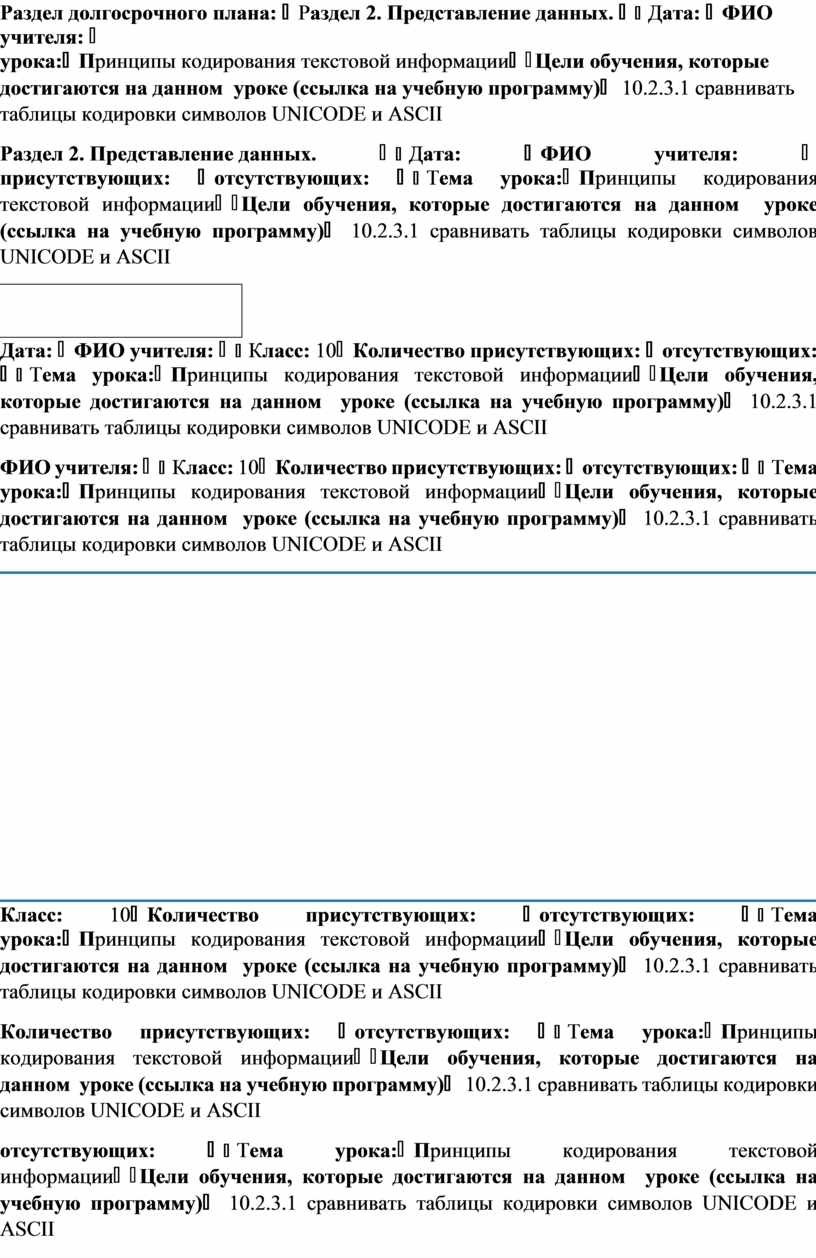 10.2.3.1 сравнивать таблицы кодировки символов UNICODE и ASCII