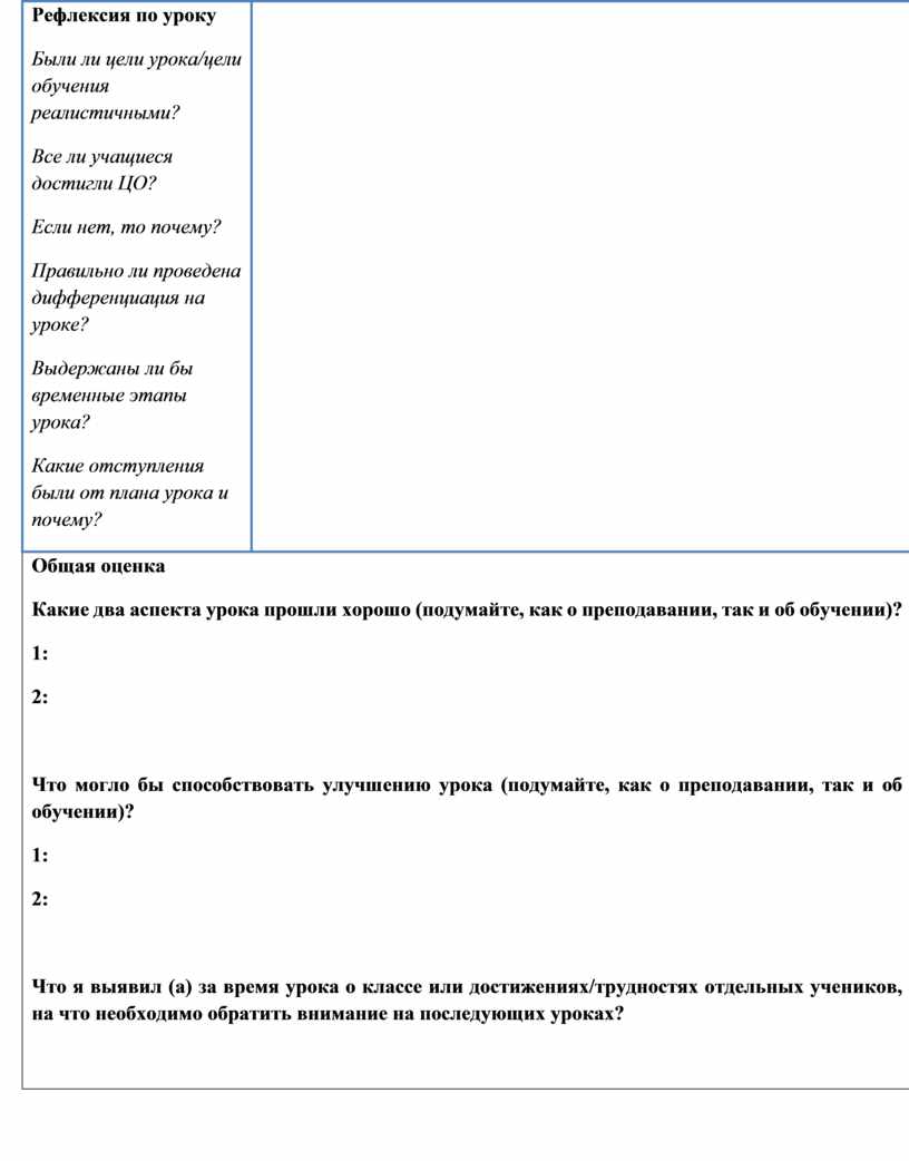 Что могло бы способствовать улучшению урока (подумайте, как о преподавании, так и об обучении)?