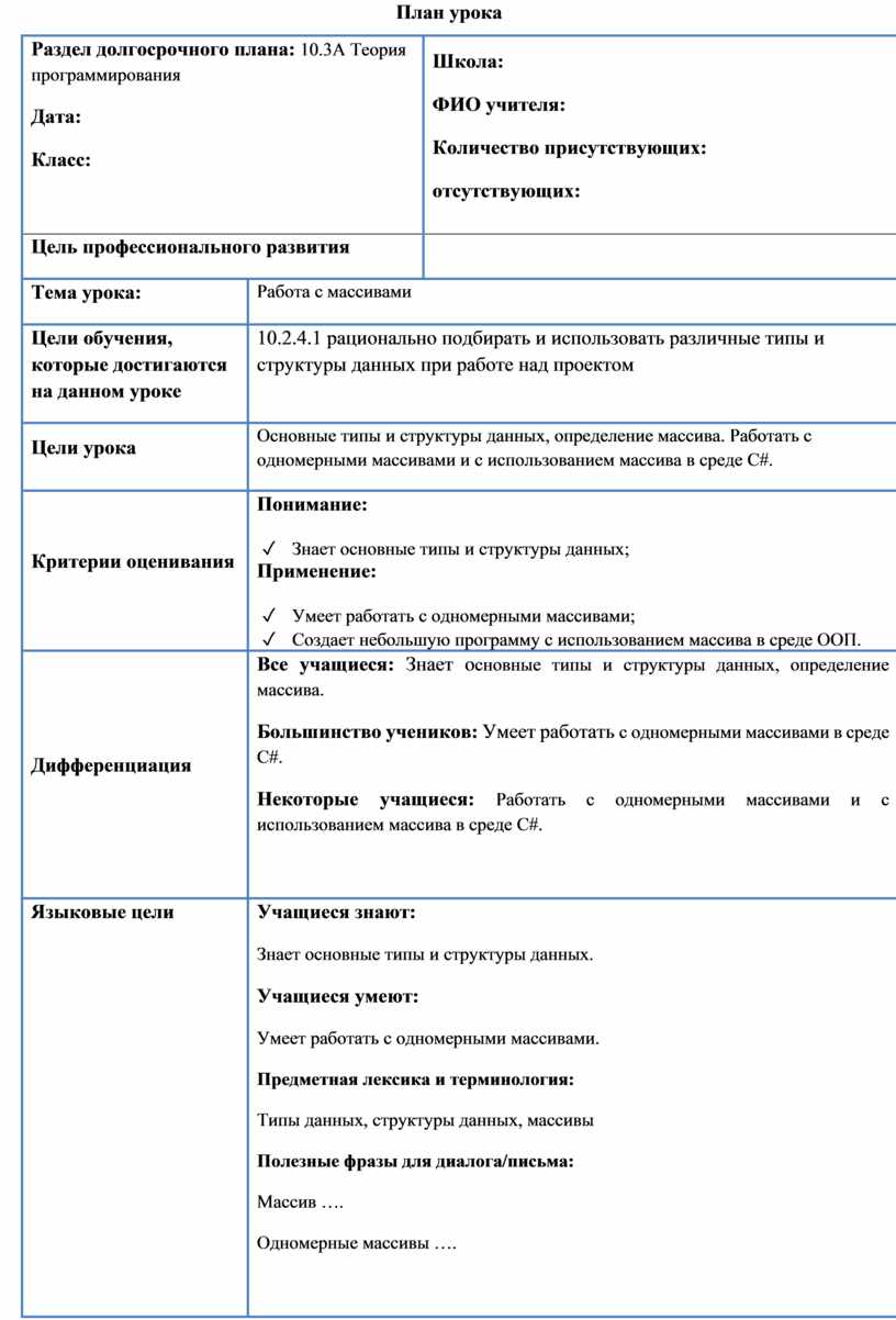 Все учащиеся: Знает основные типы и структуры данных, определение массива.