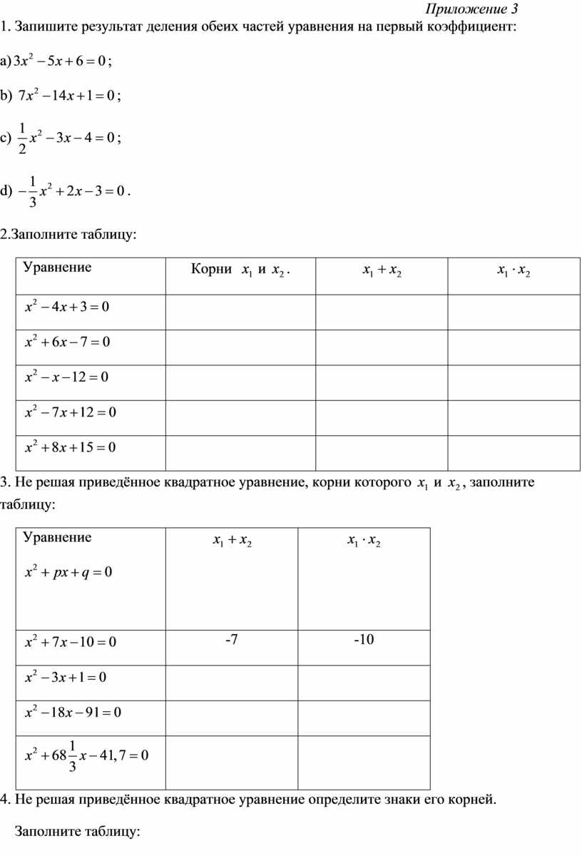 4. Не решая приведённое квадратное уравнение определите знаки его корней.