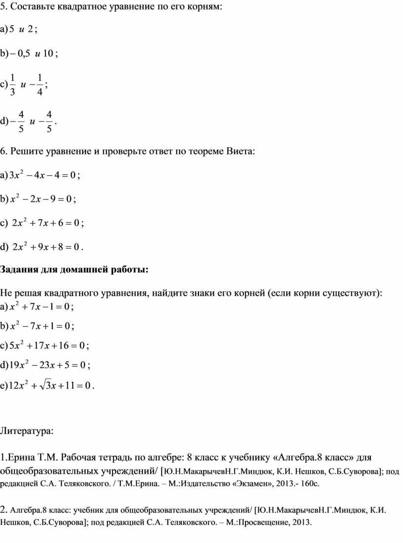 6. Решите уравнение и проверьте ответ по теореме Виета:
