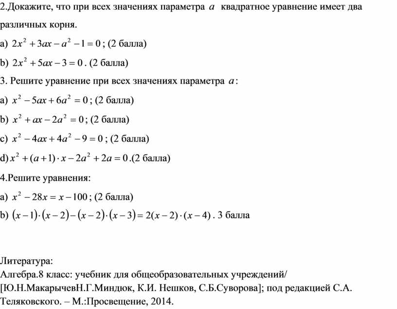 Алгебра.8 класс: учебник для общеобразовательных учреждений/ [Ю.Н.МакарычевН.Г.Миндюк, К.И. Нешков, С.Б.Суворова]; под редакцией С.А. Теляковского. – М.:Просвещение, 2014.