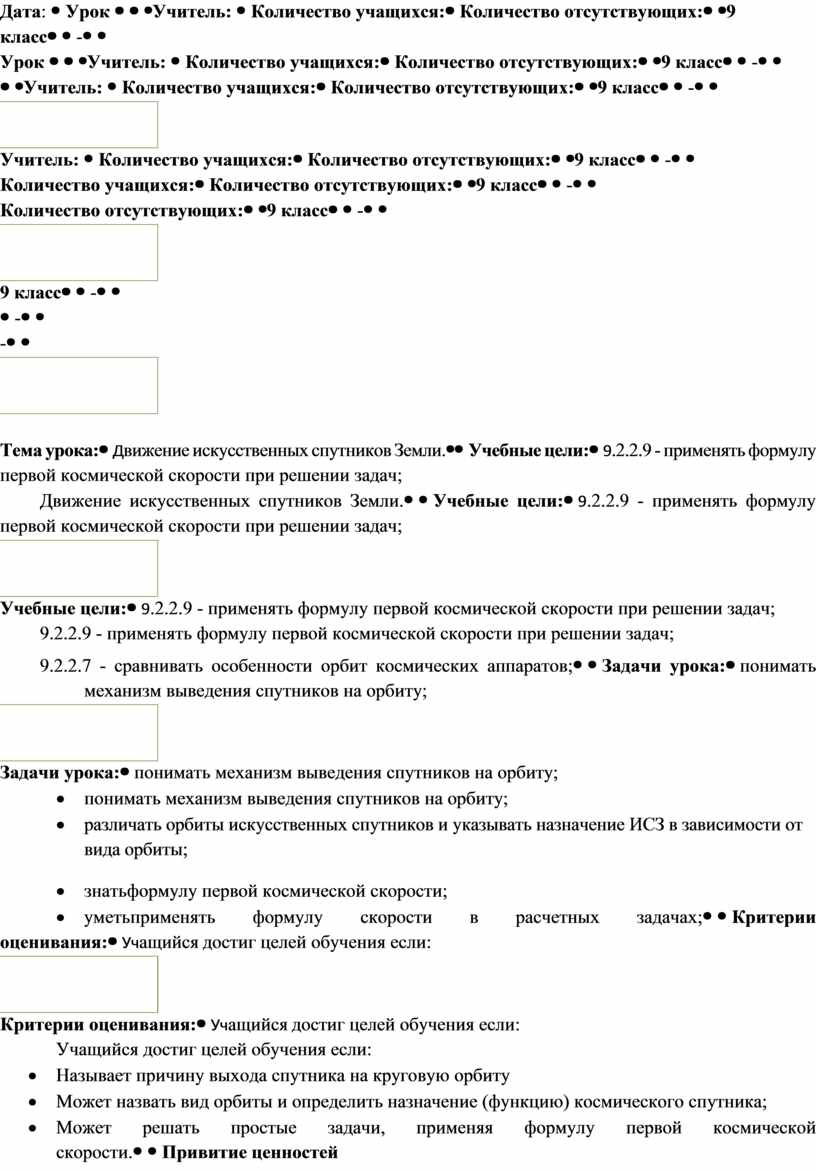 9.2.2.9 - применять формулу первой космической скорости при решении задач; 9.2.2.7 - сравнивать особенности орбит космических аппаратов; |