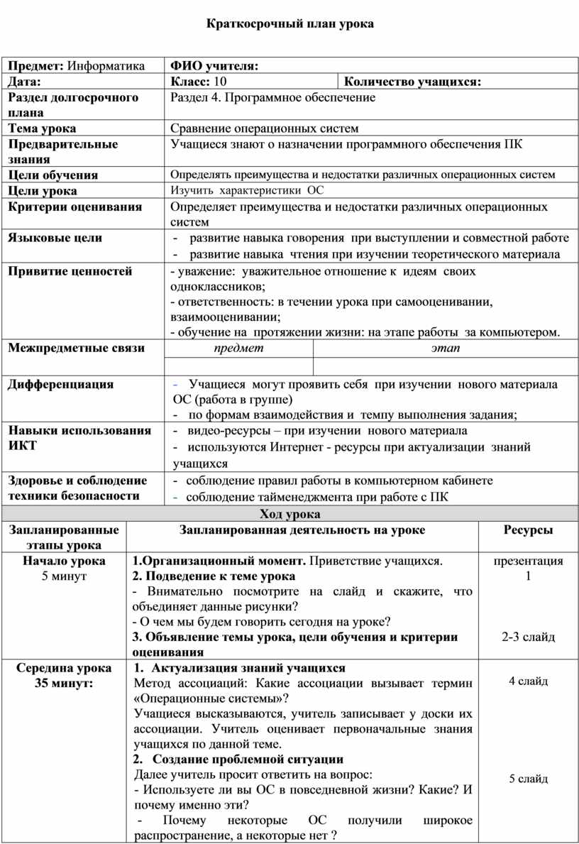 Определять преимущества и недостатки различных операционных систем |