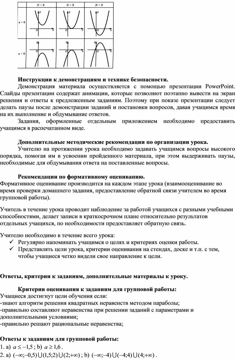 -знают алгоритм решения квадратных неравенств методом параболы;