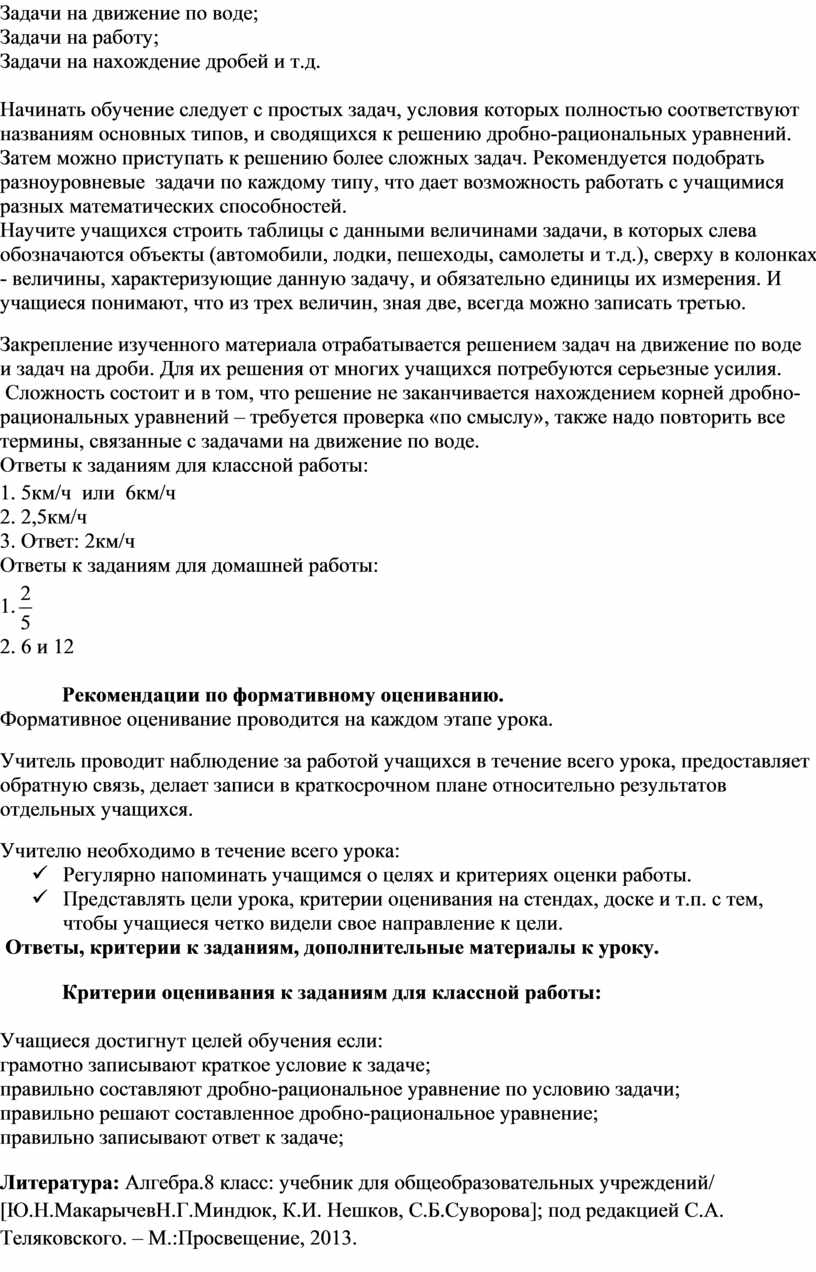 8.4.2.2 решать текстовые задачи с помощью дробно-рациональных уравнений;