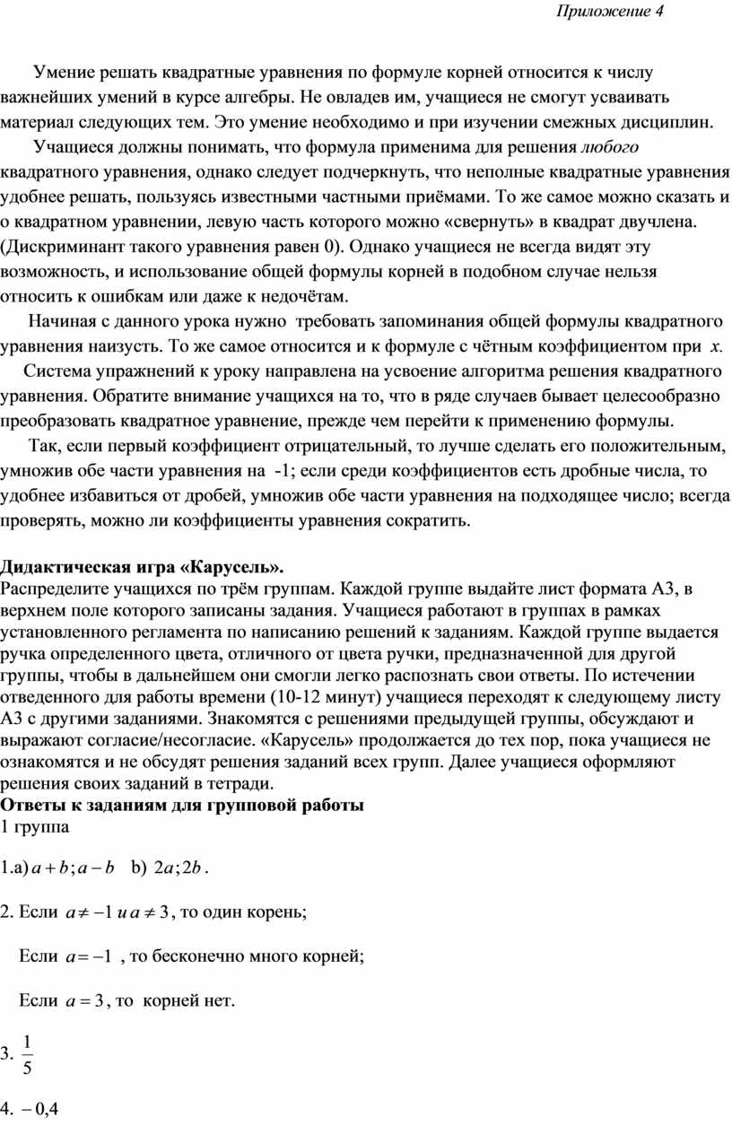 Умение решать квадратные уравнения по формуле корней относится к числу важнейших умений в курсе алгебры. Не овладев им, учащиеся не смогут усваивать материал следующих тем. Это умение необходимо и при изучении смежных дисциплин.