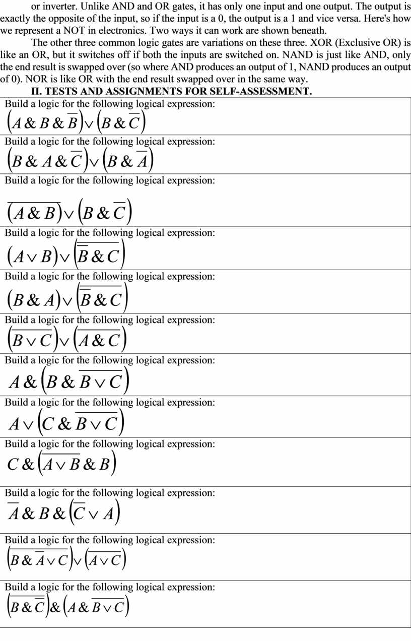 Using and know the purpose of the main logical elements: OR operator, AND operator, invertor