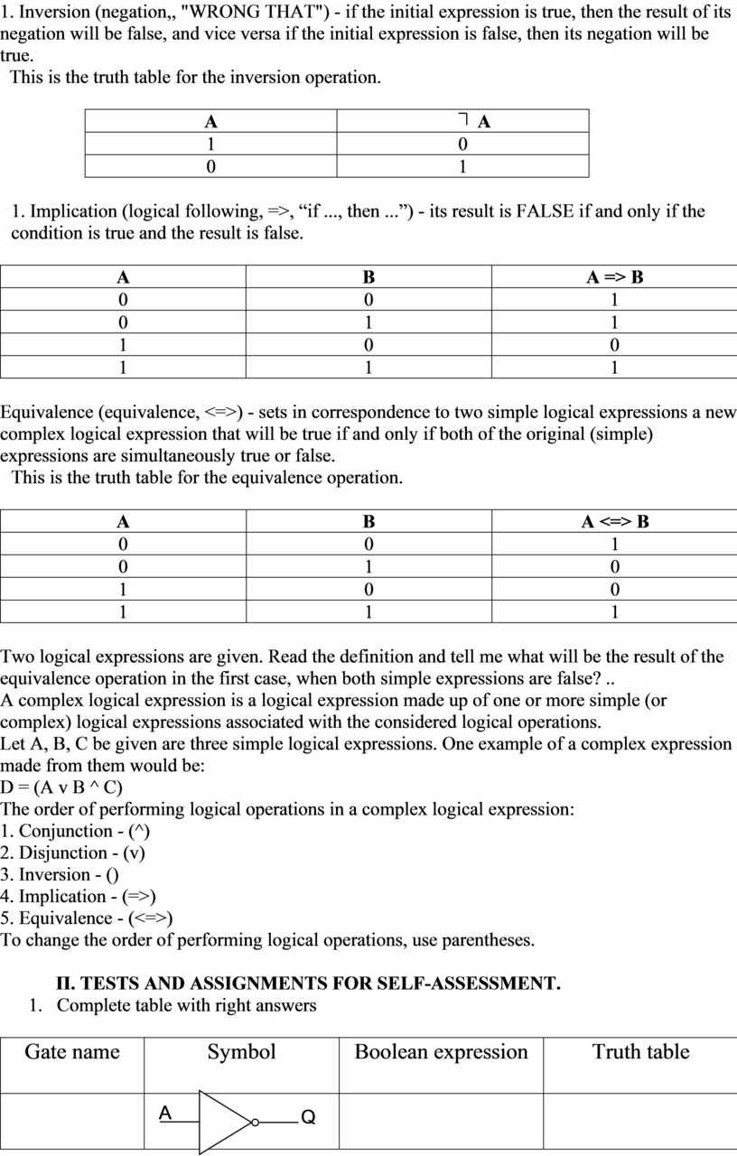 1. Inversion (negation,, "WRONG THAT") - if the initial expression is true, then the result of its negation will be false, and vice versa if the initial expression is false, then its negation will be true.
