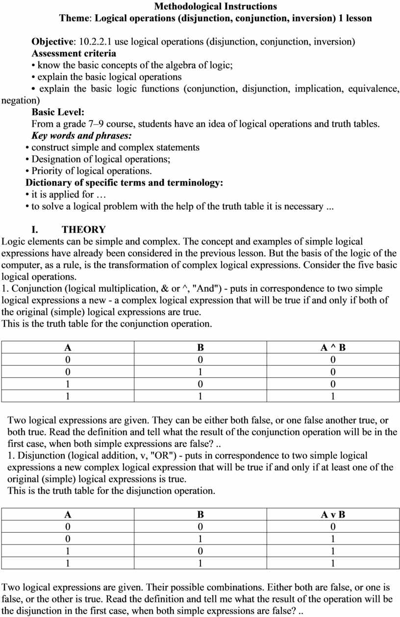 Objective: 10.2.2.1 use logical operations (disjunction, conjunction, inversion)