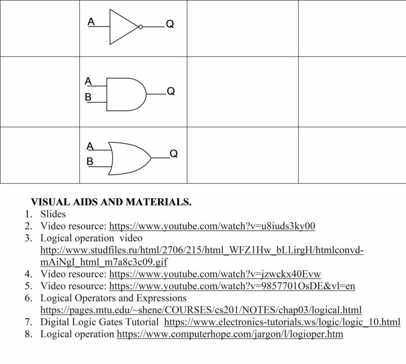 From a grade 7–9 course, students have an idea of logical operations and truth tables.