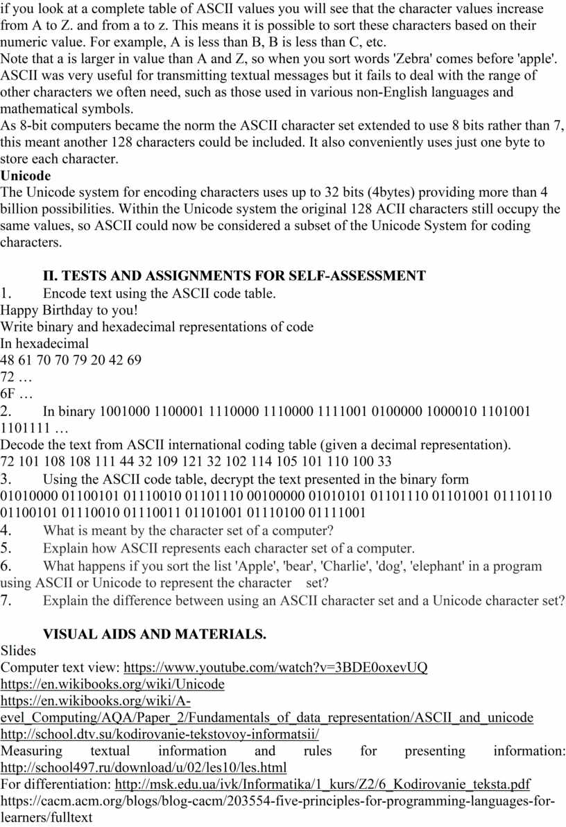 7. For differentiation: http://msk.edu.ua/ivk/Informatika/1_kurs/Z2/6_Kodirovanie_teksta.pdf