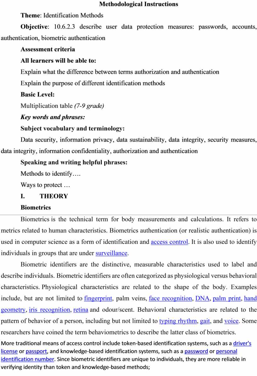 Objective: 10.6.2.3 describe user data protection measures: passwords, accounts, authentication, biometric authentication