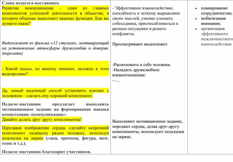 · эмоционально-положительный настрой на мероприятие, создание ситуации успеха, доверия; · формирование информационных компетенций; · формирование ценностных установок, в числе которых – умение строить коммуникацию, межличностные отношения и взаимодействие в группе
