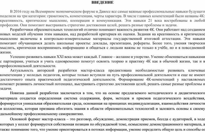 Назначение данной методической разработки заключается в оказании помощи молодым педагогам в освоении навыков 4К-компетенций, выборе приемов при их применении с учетом конкретных условий и особенностей педагогической деятельности.
