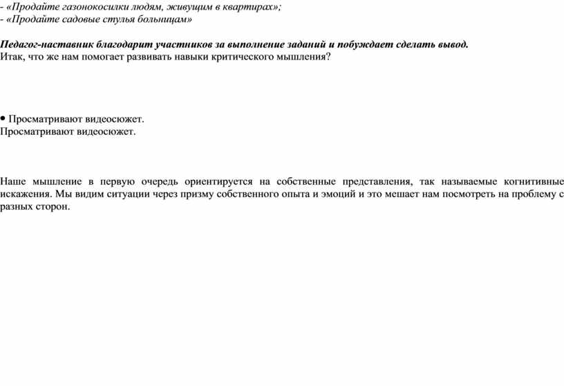 Педагог-наставник благодарит участников за выполнение заданий и побуждает сделать вывод. Итак, что же нам помогает развивать навыки критического мышления?