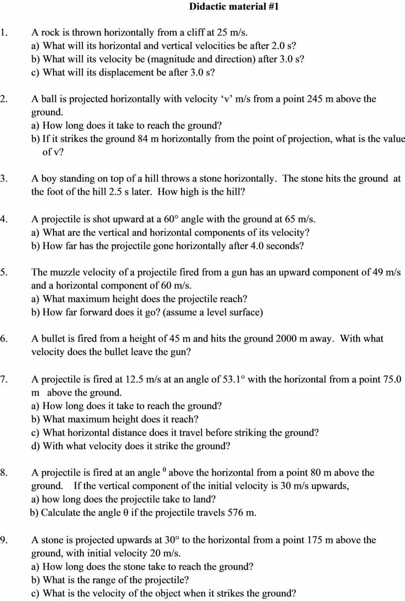 1. A rock is thrown horizontally from a cliff at 25 m/s.