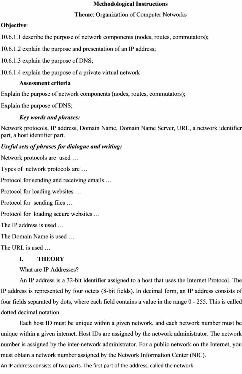 Network protocols, IP address, Domain Name, Domain Name Server, URL, a network identifier part, a host identifier part.